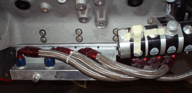 The full system - including the low-profile pan, four-stage external pump, remote filter, and hidden oil reservoir - is covered separately in the Dry Sump section.