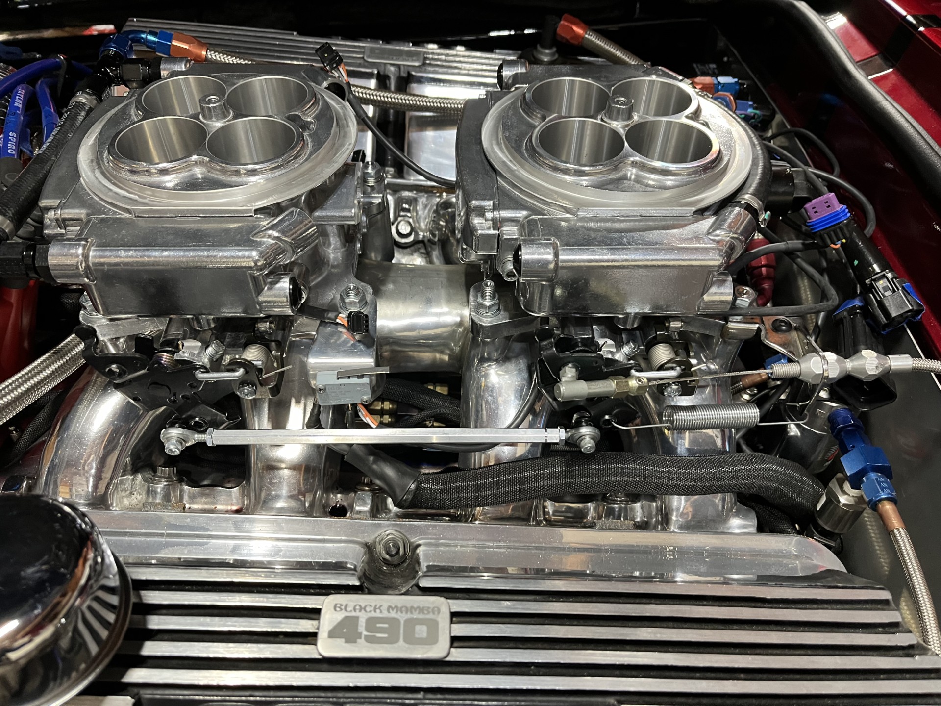 Beyond its already substantial naturally aspirated output, the Black Mamba was engineered with an additional layer of performance capability. The intake manifold was sent to Mike Thermos of Nitrous Supply, where a fully integrated nitrous oxide system was designed and installed beneath the manifold.